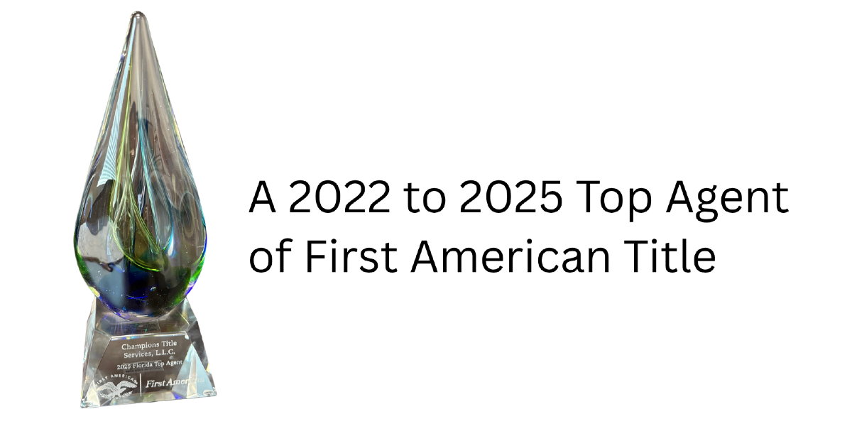 Locally owned and operated since 2011, Champions Title Services, LLC is a full-service title company with offices in Trinity, FL and South Tampa, FL, along with flexible signing locations in Inverness, FL. We are licensed to handle both residential and commercial closings throughout the state of Florida. To make your real estate transaction as smooth and convenient as possible, we also coordinate notary signings anywhere within the continental United States. Se habla Español.